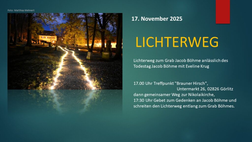 „In einer Zeit der umfassenden Neuorientierung – nach dem Ende des Ersten Weltkriegs, dem Zusammenbruch des Kaiserreichs und der Gründung der Weimarer Republik – entstand in Görlitz der Jakob-Böhme-Bund.